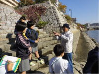 | 地域の人の案内で、 かよこバスや大雁木などを 見学に行きました。 |
